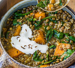 Lentil, Spinach and Butternut Squash with a Creamy Coconut Sauce